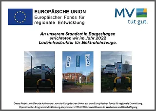 Bestehend aus vier 2x22kW Säulen (davon zwei 24h öffentlich zugänglich) und einer 165 kW Schnellladesäule für PKW und LKW (ebenfalls öffentlich zugänglich).